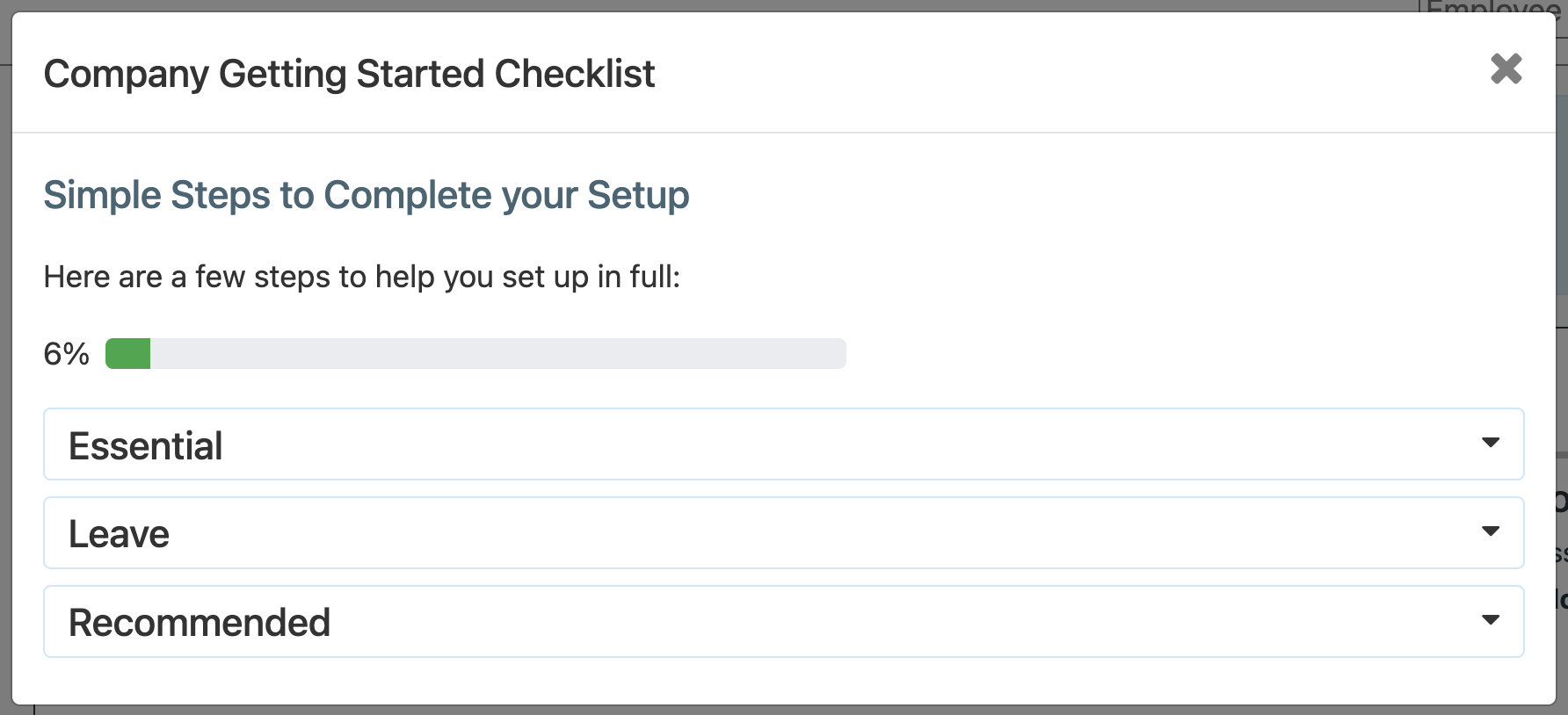 Once you have signed up for a trial period at SimplePay, you will be prompted to start getting your company set up using the checklist.